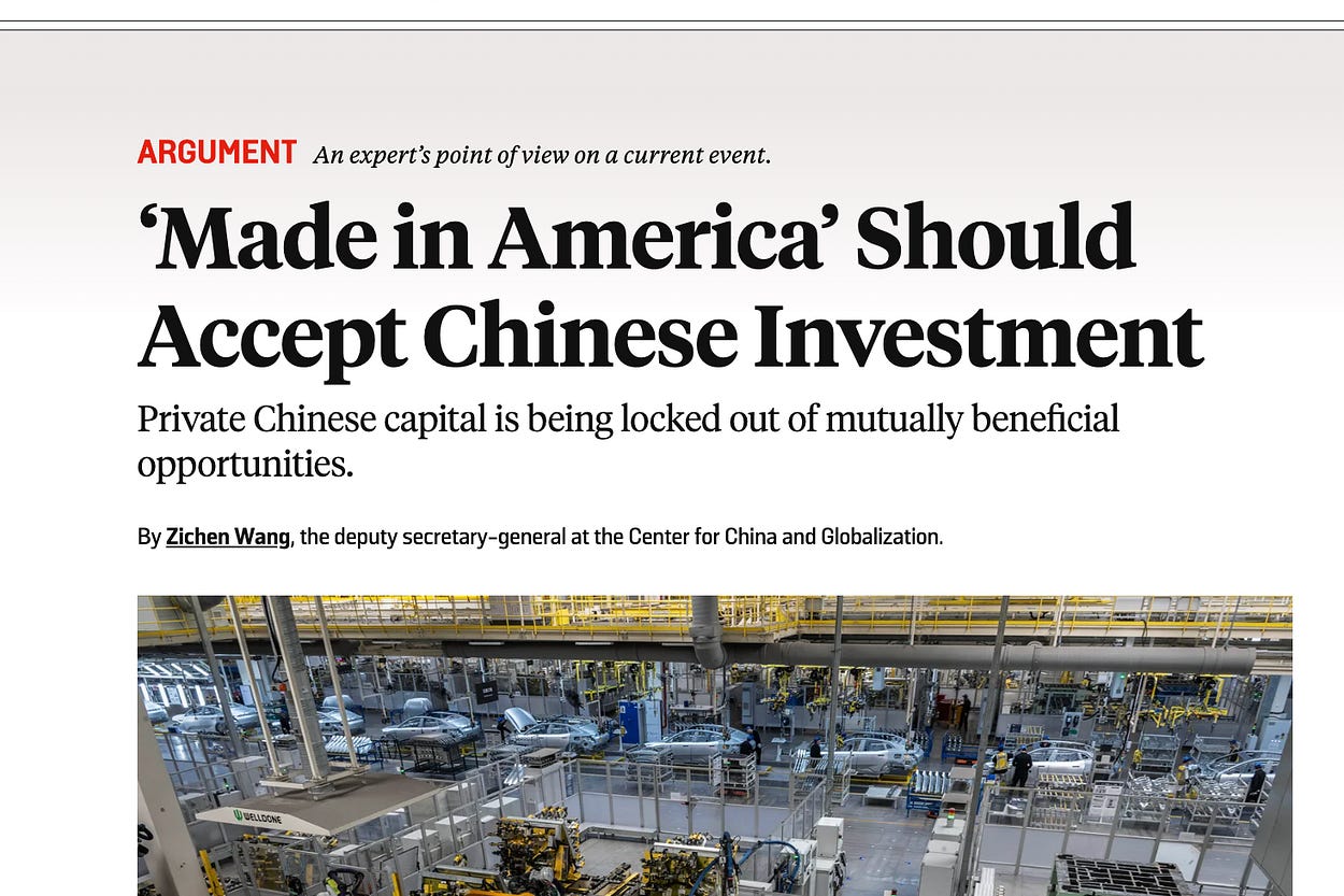 Op-ed in Foreign Policy: ‘Made in America’ Should Accept Chinese Investment