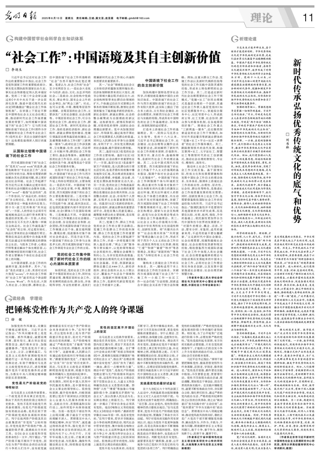 Accelerating the development of philosophy and social sciences with Chinese characteristics essentially requires constructing China’s independent knowledge system. Social work within the Chinese context differs significantly from its Western or international counterparts, highlighting the urgent need to move beyond the confines of Western theory and practice. China’s own political, cultural, and social realities, as well as its governance needs, must ground the creation of foundational theories, practical frameworks, and institutional mechanisms for social work with Chinese characteristics.