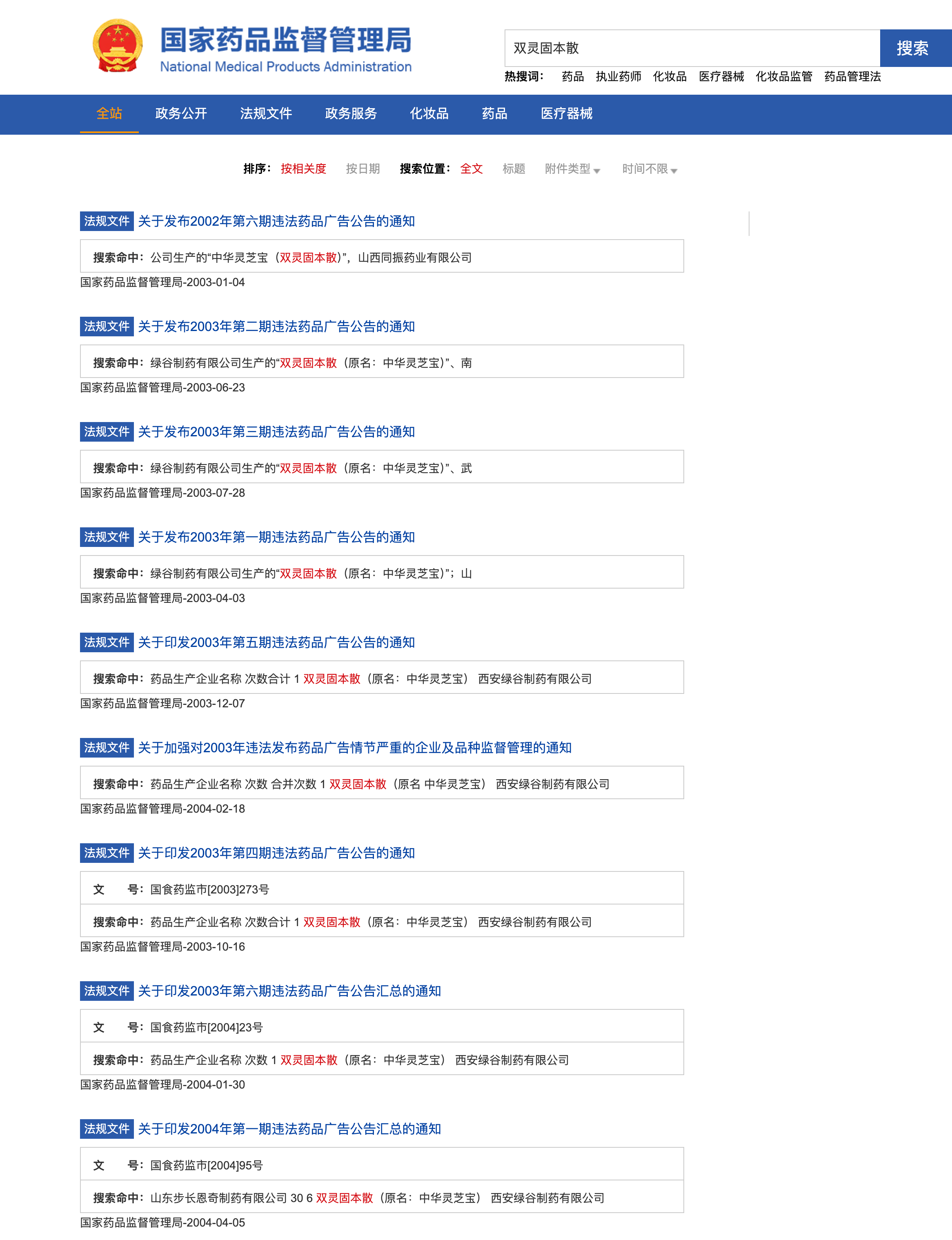 The “unlawful drug advertisement announcement system” was established in July 2001. By the end of 2006—within just five years—“Shuangling Guben San” had been listed in the national-level Public Announcement on Unlawful Drug Advertisements a staggering: