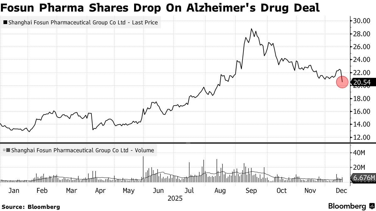 Even if one brackets the debate over whether GV-971 ultimately works, the developer’s history matters as context for assessing reputational risk, regulatory scrutiny, and why markets may punish the acquirer. When that context goes unmentioned, many readers—and certainly many potential investors who are not well-versed in the Chinese mediasphere—are unlikely to know it exists at all. And that missing background may be central to understanding why Fosun Pharma’s bet triggered such an immediate selloff.