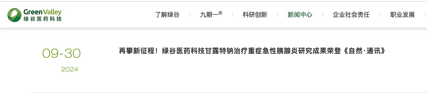 As it happens, Green Valley Technology now also advertises “Research Findings on Sodium Oligomannate (GV-971) for Treating Severe Acute Pancreatitis Published in Nature Communications,” as if the scientific journal proves the drug now treats another disease.