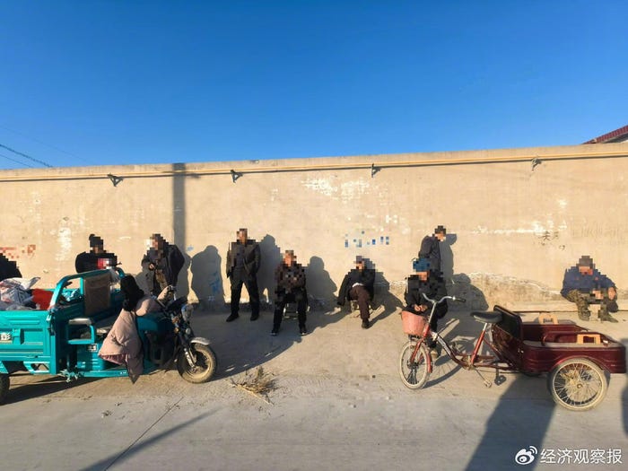 “Only his family keeps it on every day. He worked in the city—his pension is 4,000 yuan a month!” someone said, pointing at an elderly man perched on a three-wheeled vehicle.