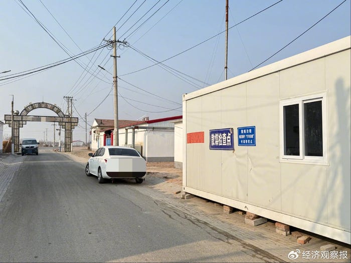 A reporter from Economic Observer visited four villages in one county in eastern Hebei and saw that under each village entrance archway there was a colored steel-sheet booth with a blue-and-white sign reading “Dispersed Coal Inspection Point.” Nearby walls or public bulletin boards posted red notices: “All units and individuals are strictly prohibited from illegally selling or using any type of dispersed coal.” The notices said violators would be traced and held legally responsible, and provided a hotline for reporting. The signature date was October 2025.