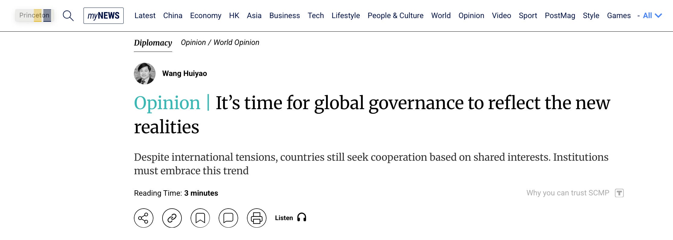 CCG founder in South China Morning Post: Despite international tensions, countries still seek cooperation based on shared interests. Institutions must embrace this trend