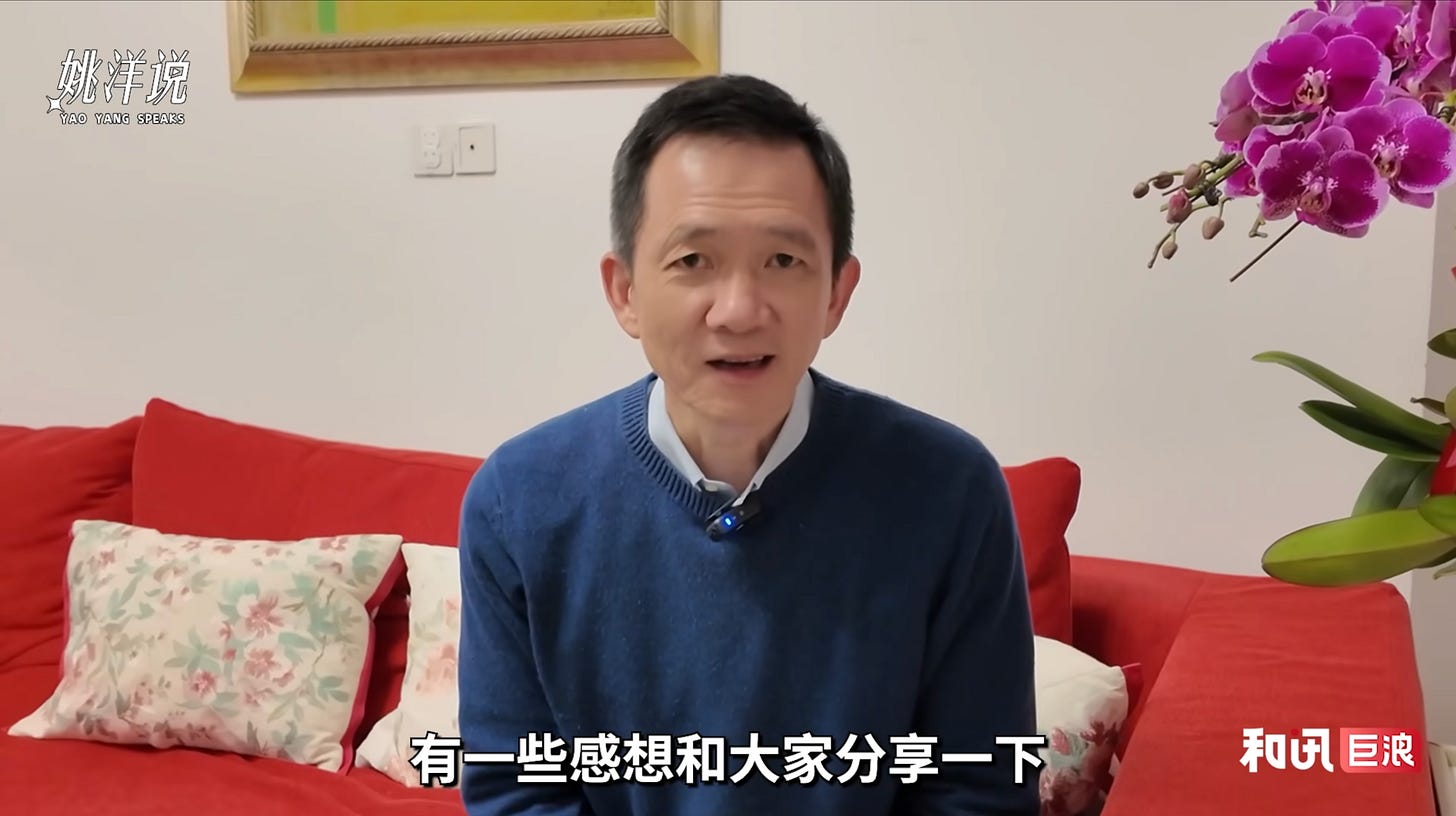 Yao Yang, dean of the Dishuihu Lake Advanced Finance Institute (DAFI), Shanghai University of Finance and Economics, is among the earliest well-known Chinese scholars to embrace short video as a way of reaching general audiences. He has since built a sizeable following on his account “Yao Yang Speaks 姚洋说”, where he discusses daily life as well as politics, economics, and current affairs. We have previously translated and published transcripts from the channel.